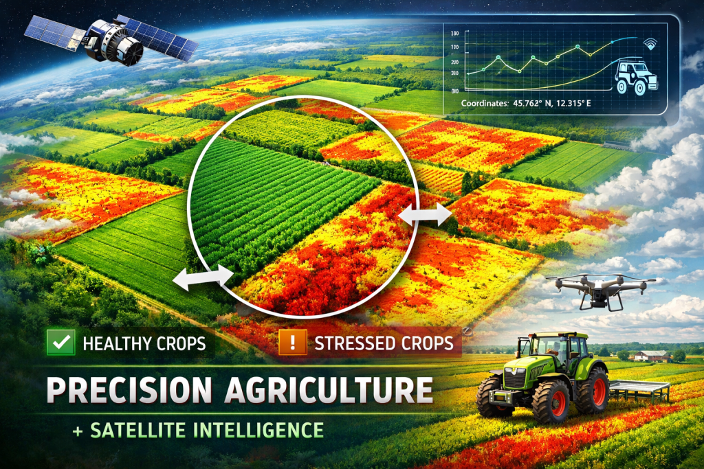 - Satellite crop health monitoring