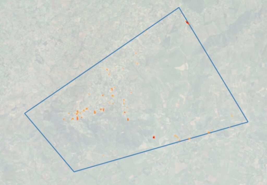 The GPI heatmap provides a visual overview of prospectivity across the AOI. Areas with “hotter” colors (e.g., red, orange) indicate strong, persistent alteration signatures, while “cooler” colors (e.g., light orange) suggest lower potential. This map highlights regional trends and geological context, guiding exploration teams to high-priority zones.