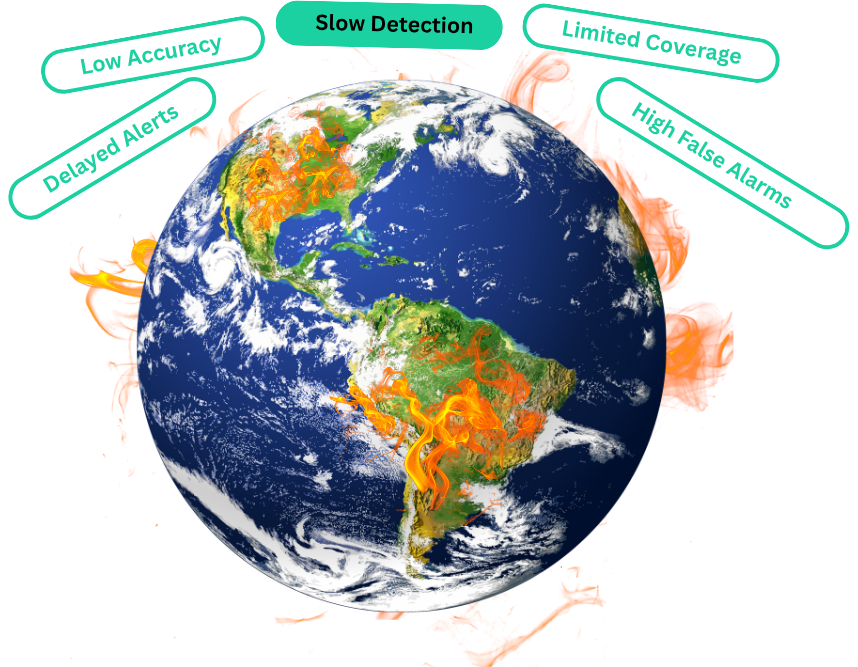 - Low Accuracy: Traditional satellite systems detect only large fires (>50 hectares) with scan intervals of 30–60 minutes.